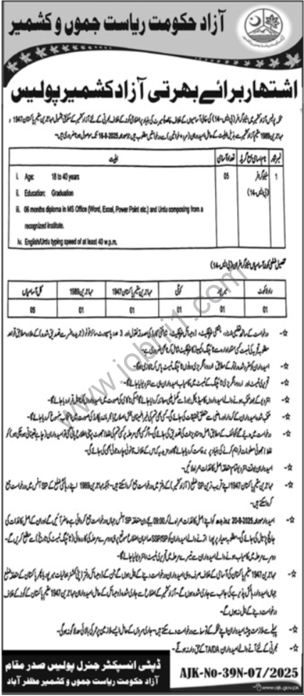 This government job opportunity at AJK Police is a great fit for job seekers with computer skills who are looking for jobs near Muzaffarabad or AJK jobs. The role offers a secure career path, valuable experience, and the chance to be part of an essential public institution.