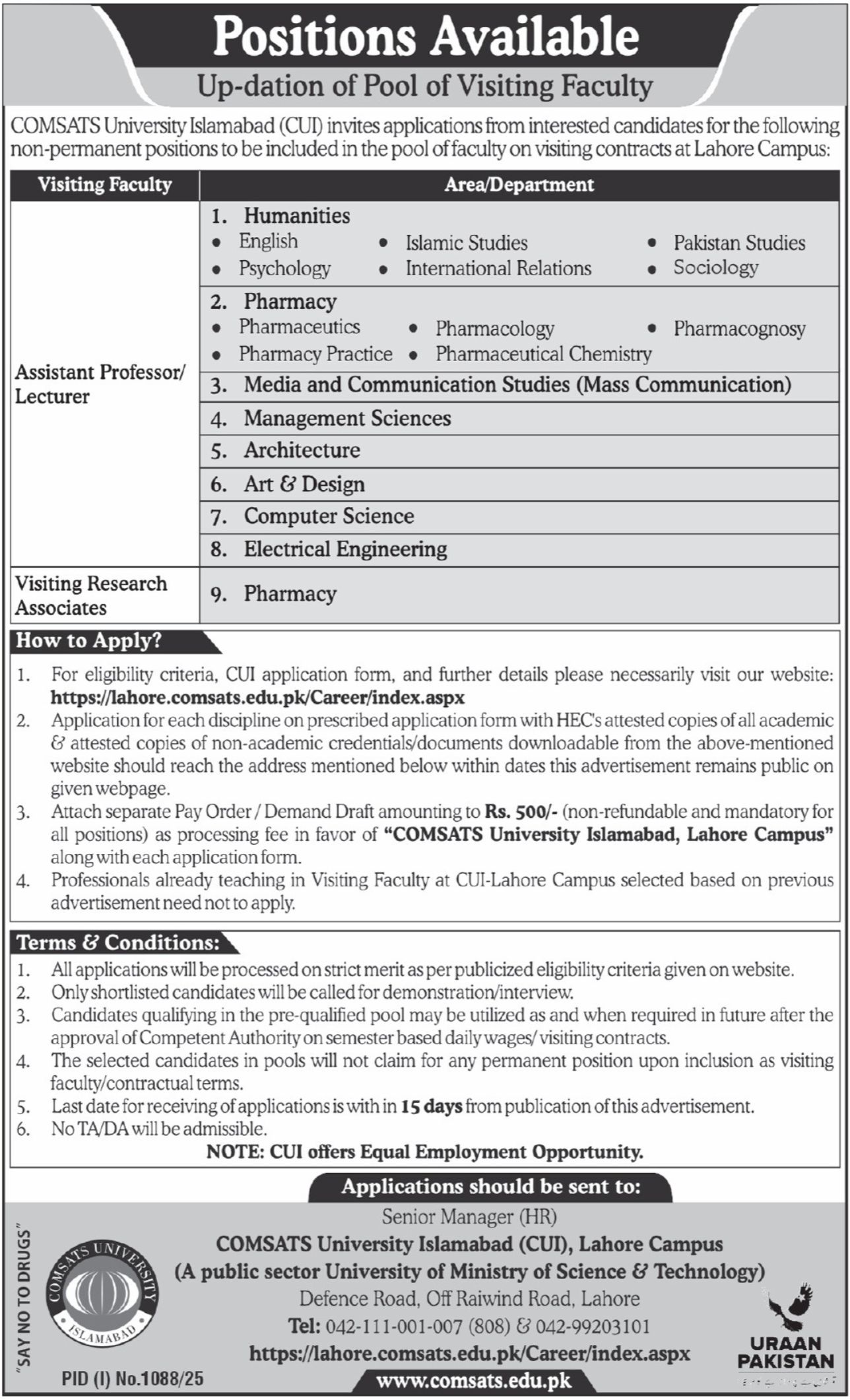 Tagged as: academic jobs Lahore, COMSATS University jobs, Defence Road jobs, education jobs Pakistan, full-time teaching jobs, Government jobs 2025, Government Teaching Jobs, Lahore teaching vacancies, Master Degree Jobs, MPhil Jobs, MS Jobs, online apply teaching jobs, PhD Jobs, Punjab government jobs, teaching jobs in Lahore